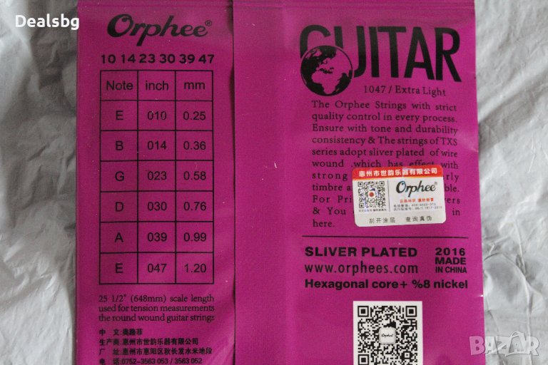 Ядрото на този модел на Orphee е от високо въглродна хексагонална никелирана стомана, а външната част е посребрен месинг, А НЕ ФОСФОР БРОНЗЕ!!С тези струни промяната в тоналния спектър се ЧУВА.Звучат плътно, продължително с отчетливи и красиви обертонове