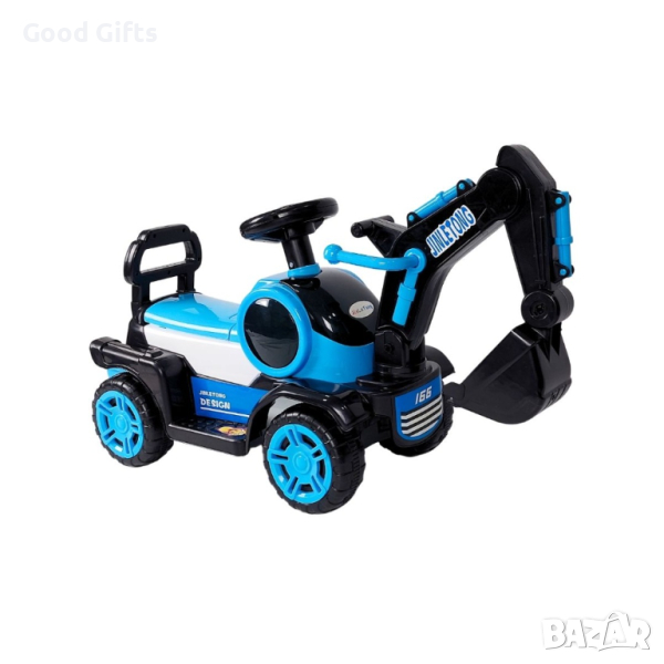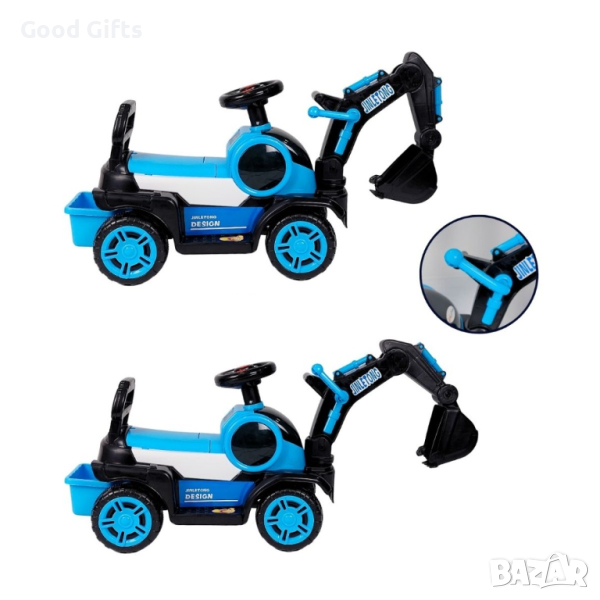 Детски Багер Кола за бутване със звук и светлиниИздържа до 20 кг. Детското багерче за яздене е с дизайн, който допринася за развитието на моториката и баланса на детето. То е с кофа и лост, който контролира движението на кофата Горна, светлина и музика. Удобна анатомична седалка с облегалка. Устойчиви и неплъзгащи се колела.Препоръчителна възраст от 1 до 3 години.