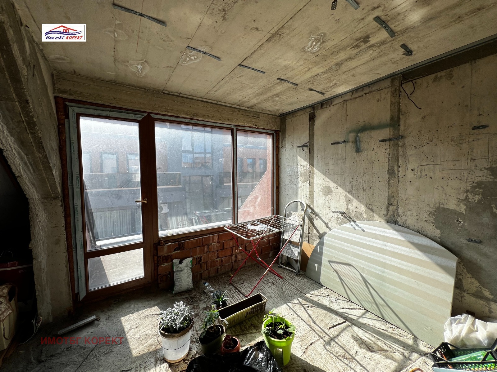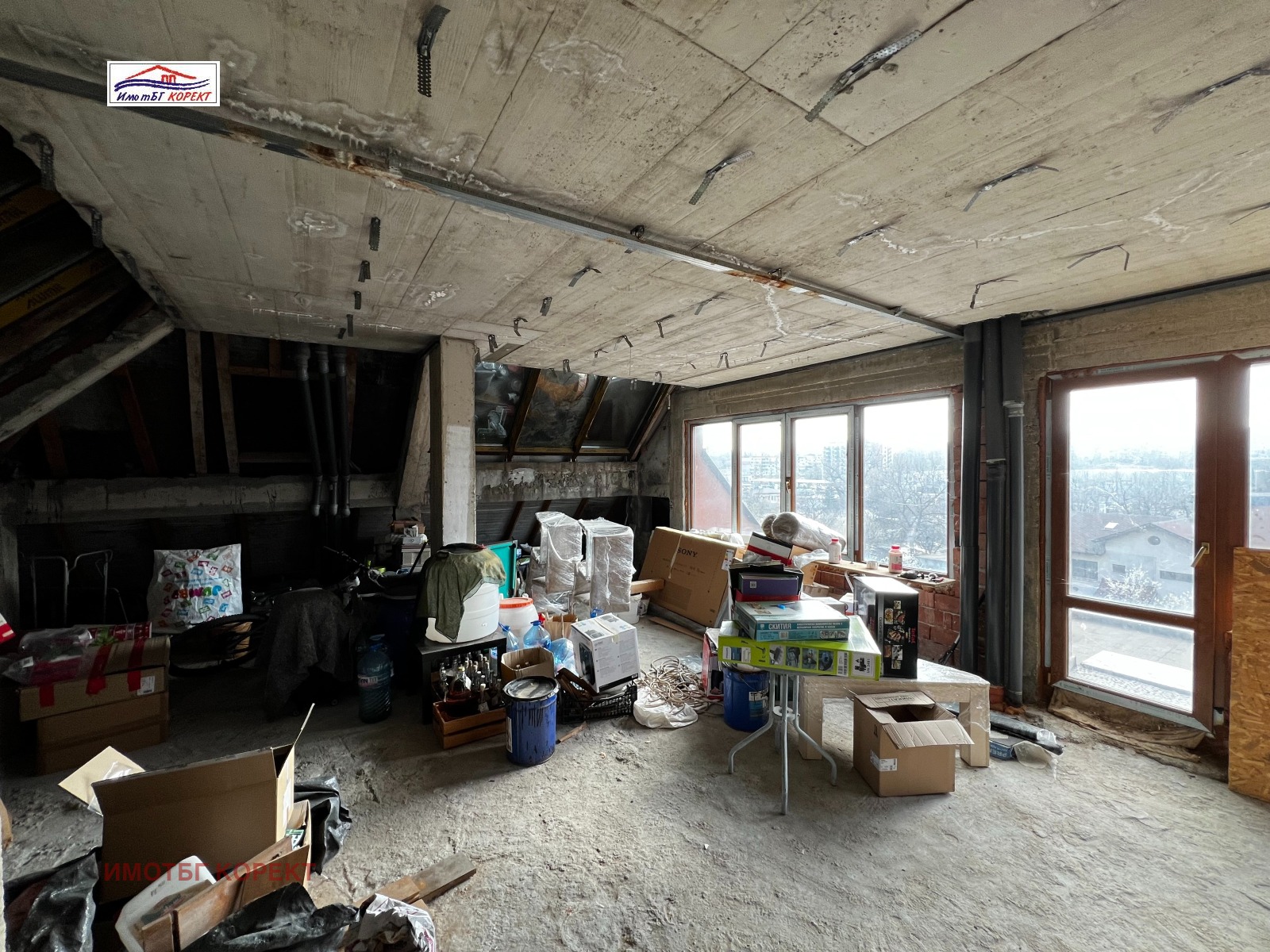 Жилището се намира на последен жилищен етаж. Продава се във вида и състоянието от снимките, без вътрешни преградни стени.