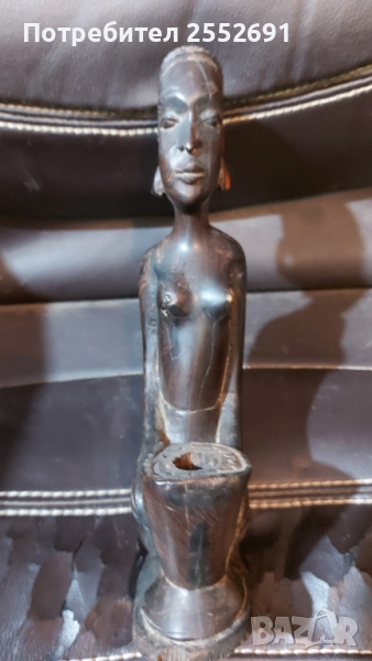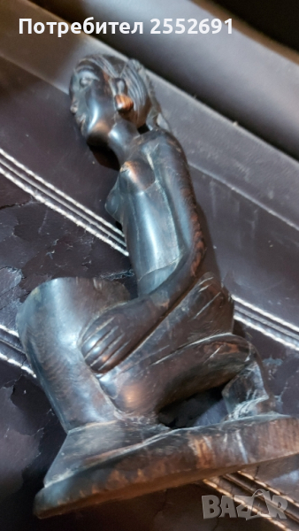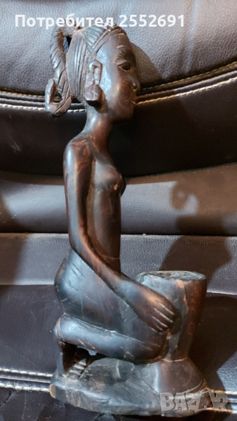 Ръчно изработена дървена фигура на жена. Масивна дървесина с тъмен цвят/махагон/ Височина-25см.