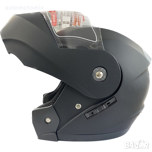 МОДУЛАРНА КАСКА 2402 - ЧЕРВЕНО МАТ Мото каска, с въздушни отвори, Черен с червена лента, мат- Модуларна. Модуларните каски, известни също като каски с отворено лице.Те имат подвижна брадичка, която може да се повдига нагоре, което улеснява слагането и свалянето на каската, както и говоренето или пиенето, докато я носите. Модуларните каски са добър избор за мотористи, които търсят гъвкава и удобна каска, която може да се използва за различни приложения. Ето и нашето предложение за този вид каска. Каската е подходяща както за градско, така и за извънградско шофиране. Охладителна система: Динамична система с въздушни отвори и задни изпускателни отвори. Изключително удобна и практична каска. Каската е изработена от висококачествени материали осигуряващи Вашият комфорт и безопасност при шофиране. Покритие: Мат Основен цвят: Черен с червена лента Лека и удобна. Лесно сваляема каишка само с едно издърпване.