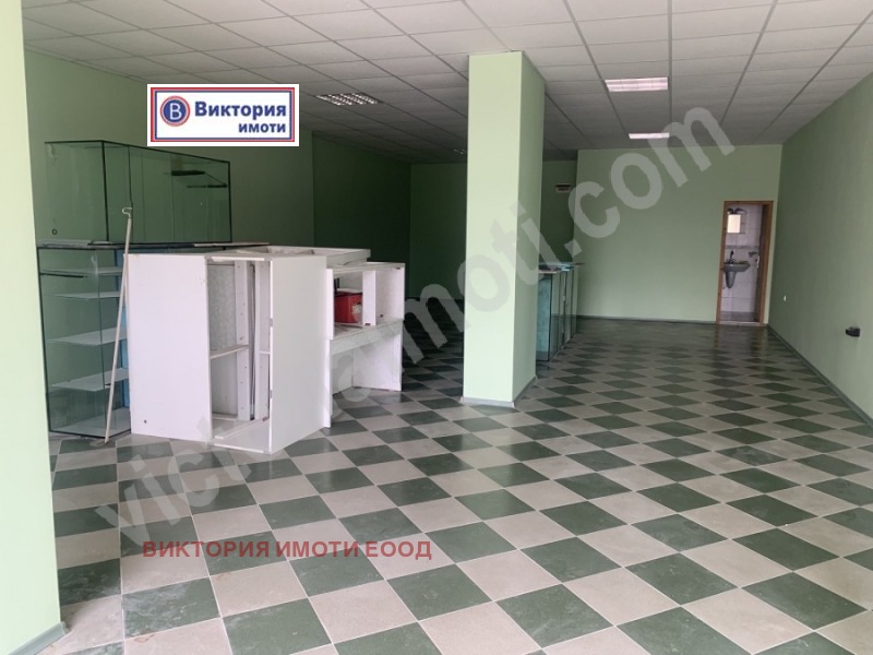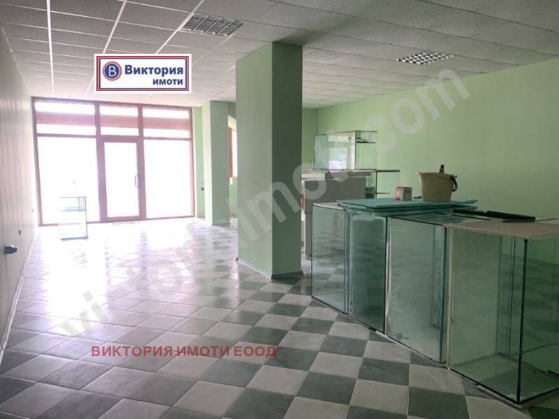 Екипът на Виктория имоти предлага на своите клиенти чудесно предложение за магазин за продажба, разположен в един от най - населените и оживени квартали на града, в район, в който се помещават магазини и офиси с различен тип дейност. Имотът е разположен на оживена улица с възможност за безплатно паркиране в района. Площта от 100 кв.м е разпределена между търговска зала, мокро помещение и санитарен възел. Разполага с големи витрини, подходящи за добра реклама. Подходящо е за фото студио, склад, салон за спа процедури и други. Запоядайте да разгледайте това чудесно предложение, подходящо за Вашият нов бизнес, както и за изгодна инвестиция с очакван месечен наем от около 500 лева. За Ваше удобство разполагаме с ключ за достъп.