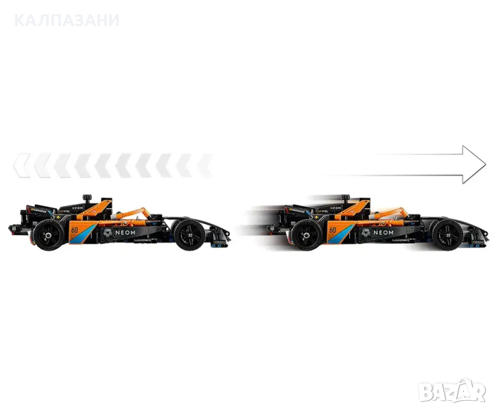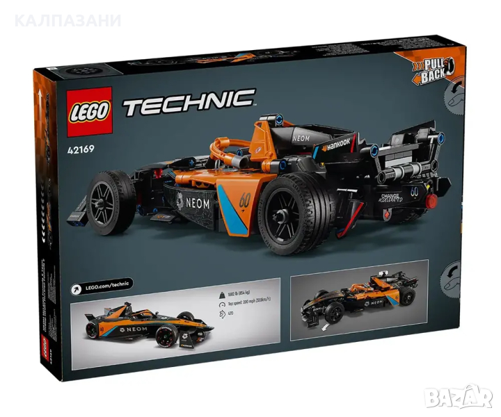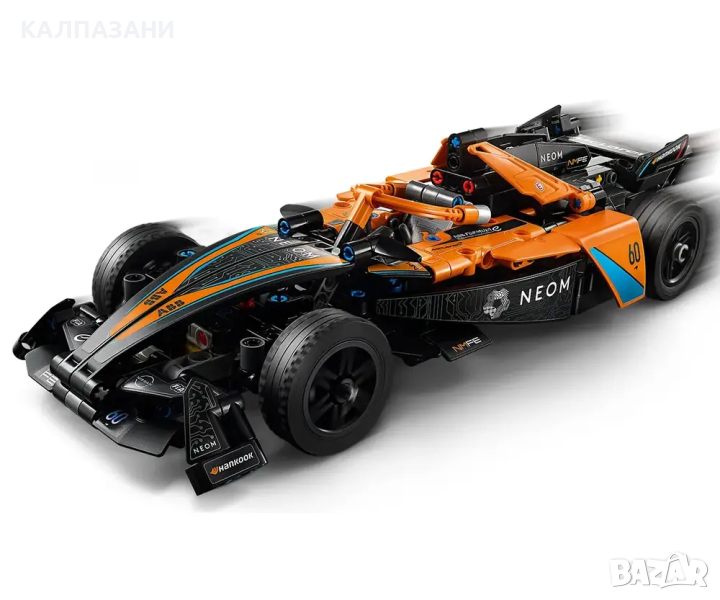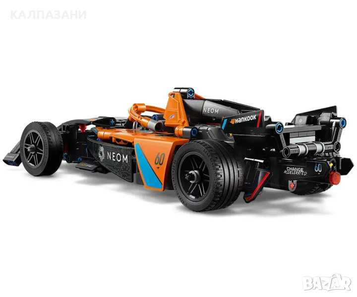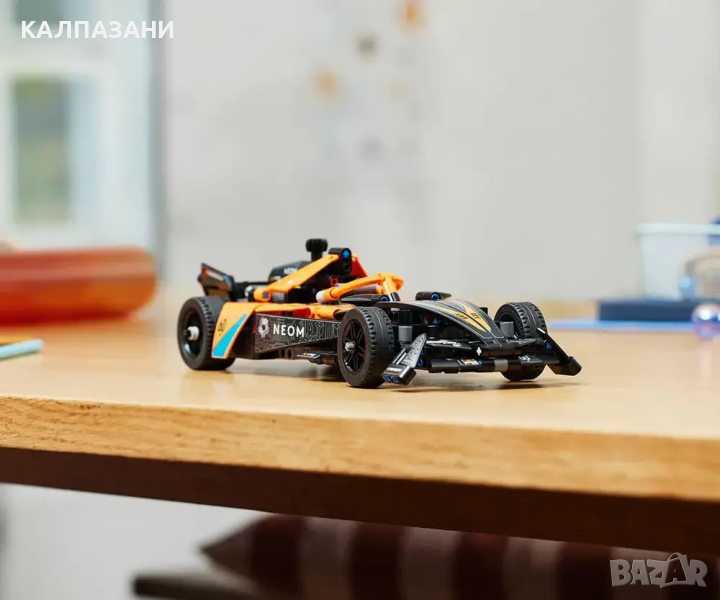 LEGO® Technic Състезателна кола NEOM McLaren Formula E е кола с издърпване назад, която е вълнуващ подарък за деца над 9 години.