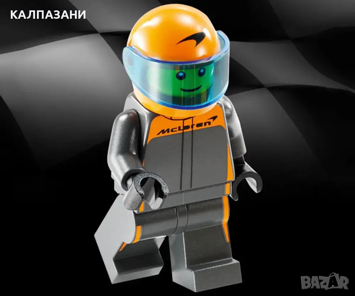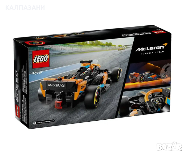 Момчета и момичета на възраст над 9 години могат да събират, конструират и излагат на показ превозното средство LEGO® Speed Champions Състезателна кола 2023 McLaren Formula 1 (76919). Елегантната кола от Формула 1 включва няколко емблематични детайла от дизайна на реалния състезателен автомобил, който гордо отпразнува 60-ата годишнина на McLaren Racing и се състезава в световния шампионат на Формула 1 през 2023 г. Моделът на автомобила McLaren включва много реалистични характеристики: дизайн в черно и папая, емблеми на спонсорите на отбора, колела с надпис Pirelli и система за безопасност на пилота в цвят папая. Комплектът за конструиране на кола се предлага и с минифигура на пилот, която децата да поставят зад волана за вълнуващи състезания. Комплектите LEGO Speed Champions позволяват на децата и запалените фенове на автомобили да построят реплики на някои от най-емблематичните превозни средства в света. Те с удоволствие ще създават висококачествени модели от тухлички LEGO, включващи отличителни детайли. Всяка кола може да бъде създадена с приложението LEGO Builder, което направлява вас и вашето дете в едно лесно и интуитивно строително приключение.