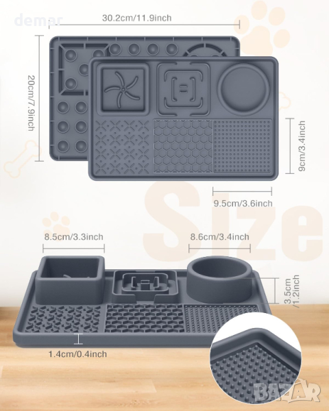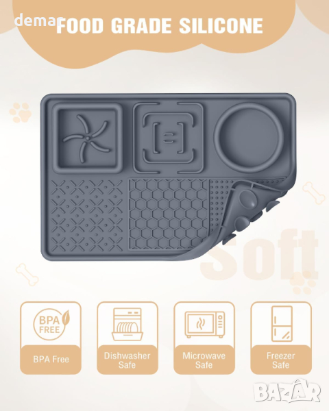 Представяме ви Heelay Slow Feeder Dog Bowls, универсално решение 6 в 1 за трапезните нужди на вашия домашен любимец! Този иновативен комплект включва две купи за бавно хранене за регулиране на скоростта на хранене и предотвратяване на разпръскването на храната, заедно с купа за вода за хидратация. В допълнение, три подложки за хранене позволяват сервирането на различни храни като фъстъчено масло или кисело мляко, обогатявайки възможностите за хранене на вашето куче. Изработени от висококачествен, хранителен силикон, тези купи са безопасни, издръжливи и лесни за почистване, с включена допълнителна четка за удобство. Силиконовите постелки против плъзгане осигуряват стабилност по време на хранене, докато повдигнатият дизайн насърчава хигиеничното хранене. Перфектни за използване у дома или в движение, купите Heelay са най-добрият спътник за хранене на вашето куче, предлагайки комфорт, удобство и спокойствие.