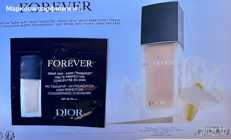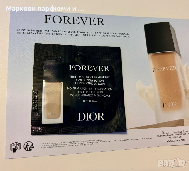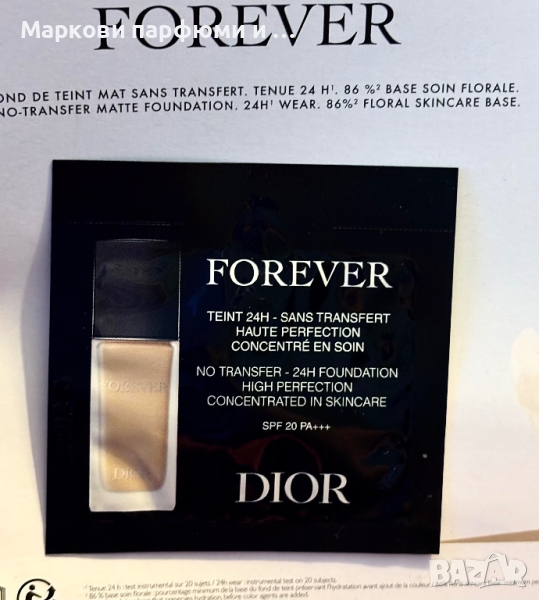 Фон дьо тенът Dior Forever подобрява тена с матов завършек без блясък. Тестван в условия на топлина, влажност и триене с дрехи.