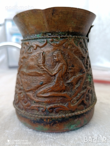 Стара, стари стар ретро винтидж арт старинен азиатски, арменско джезве. Донесено е от Турция отдавна, но реално е много старо. Всички данни са на снимките Моля вижте фото Цената е за брой старо джезве.