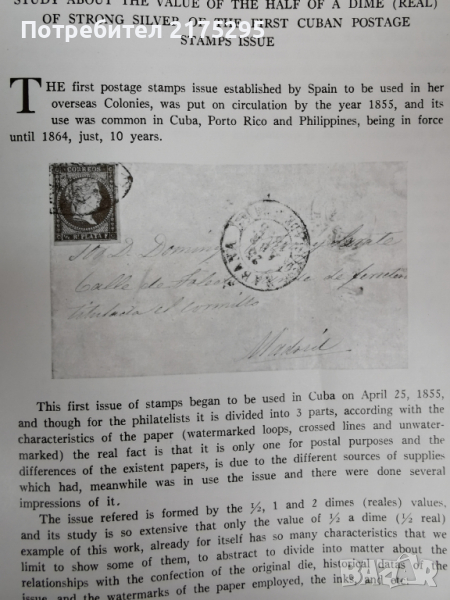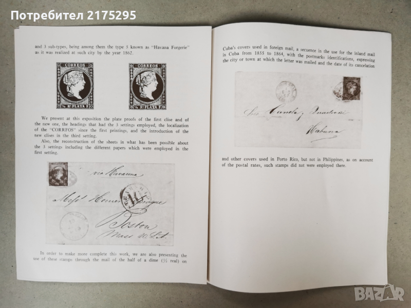 Каталог филателна изложба-София1965г. - Първите кубински марки издадени от Испания за използване в нейните отвъдморски територии пуснати в обращение от 1885 до 1864г. само за 10 г. употребявани в Куба, и Филипините Порто Рико