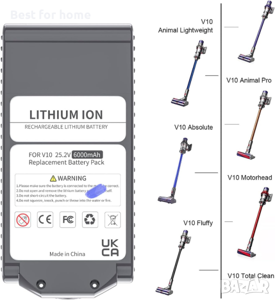 🌳【Съвместими модели】Напълно съвместим с вашия Dyson V10 Vacuum Cyclone V10 Animal, V10 Absolute, V10 Motorhead, V10 Fluffy, OEM V10 батерия и съвместим за Dyson V10 зарядно устройство. (НЕ СТАВА ЗА V8 Vacuum SV10 батерия)