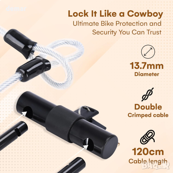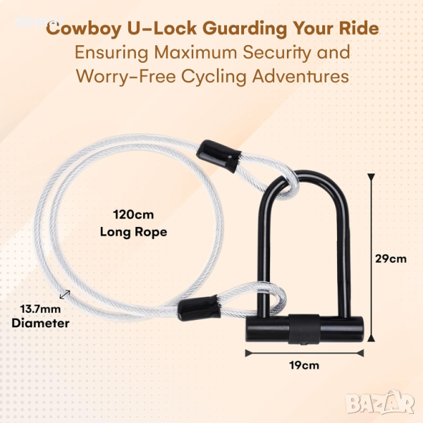 Cowboy Bike U Lock Стоманена ключалка за велосипеди с 2 ключа, 120 см кабел, черно/сребристо