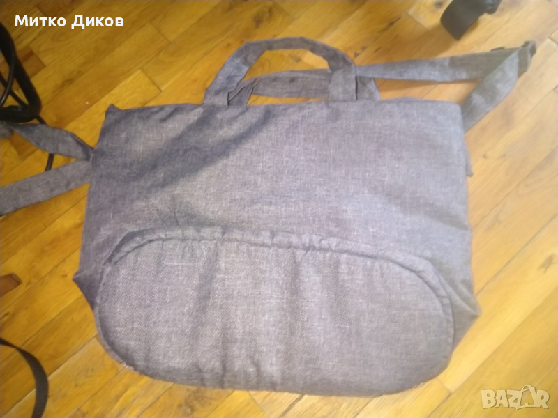 Сива маркова чанта Лорелли за през рамо промазан плат нова 43х32х15см-изпращам по еконт-по спиди
