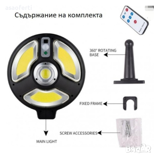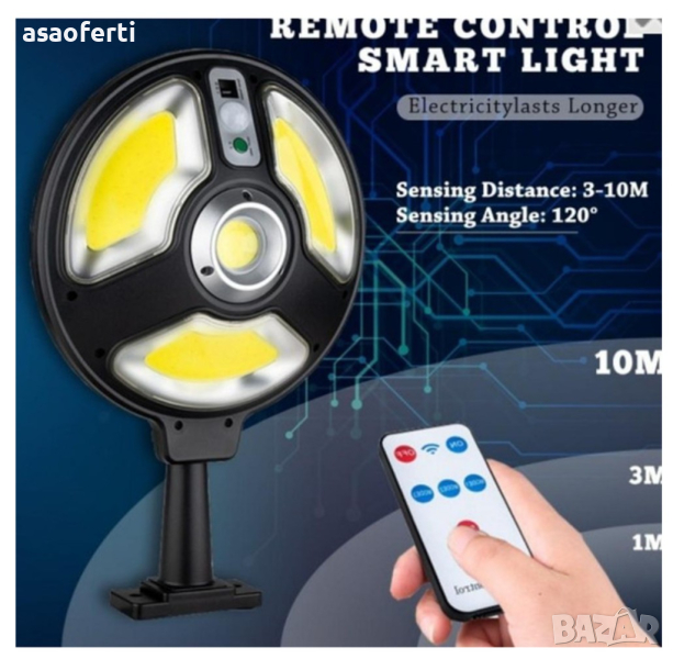 Соларна LED лампа с дистанционно и датчик за движение