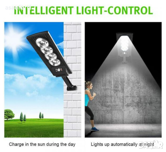 Мощна соларна LED лампа със сензор, дистанционно управление.