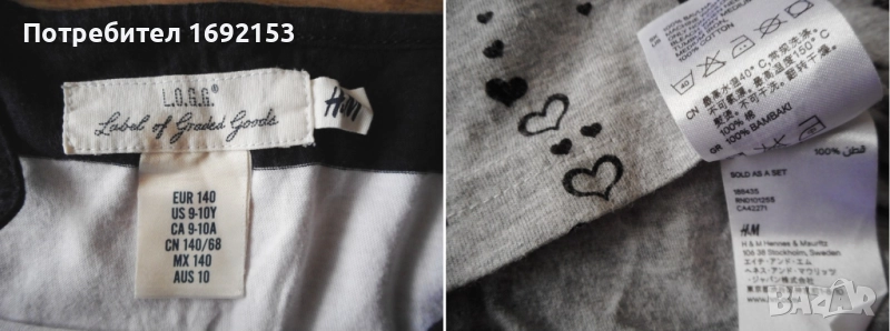 - Гащеризон H&M за ръст 140см и 9-10год по етикет, но е умален и е носен от дъщеря ми до 9 години. Материя – 57% памук и 43% вискоза. Дълж. 60см. На талията е с вмъкнат ластик. Запазен в идеално състояние. Цена като нов – 16 лв.