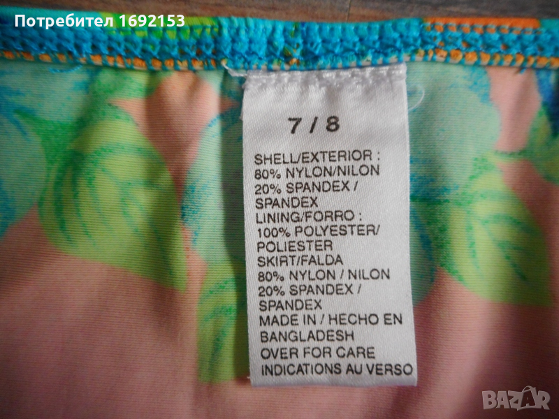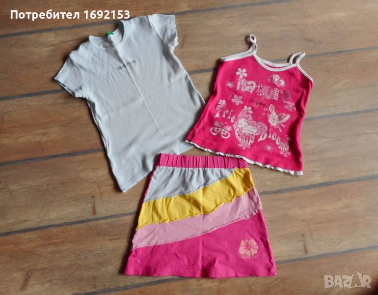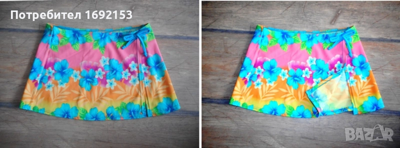 Към лота с дрехи, при желание подарявам поличка, която беше комплект към цял бански. За възраст 7–8год. Почти не е употребявана.