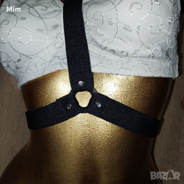 Черен чокър от широк ластик със сребристи камъчета съединени с метална халка под бюста от 50 до 80 см едностранно, утива към вратът 20 до 30 см едностранно