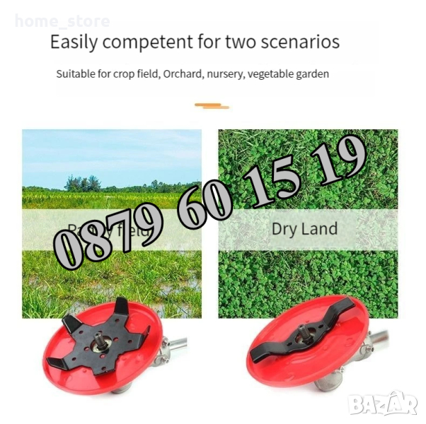 Този нож е предназначен за косене на трева и е особено полезен за работа в ниви, овощни градини, разсадници и зеленчукови градини. Една от ключовите предимства на този нож е, че при работата с него няма да повредите културите, тъй като дискът, който се използва за косене, е по-голям от острието. Това означава, че при косене на трева около културите, дискът няма да докосне или повреди тях.