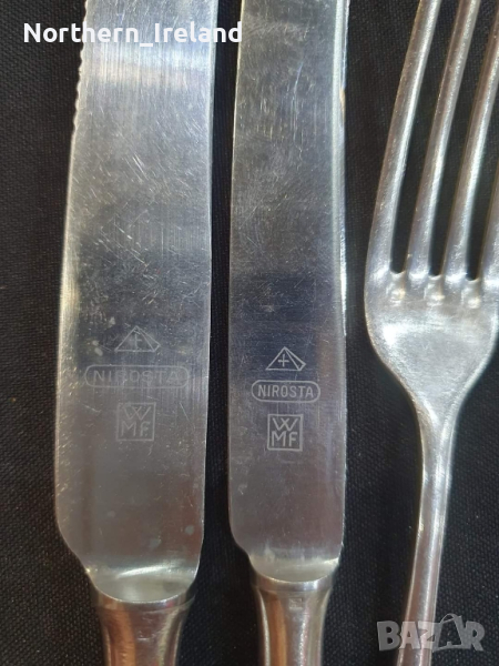 Масивно посребрени,истински прибори на WMF 90микрона сребро ,най висок клас-общо 67части -цена за всичко 600лв (90микрона -се равнява на 90грама сребро в 1кг -приборите са около 3кг -среброто в тях е около 270грама-цената е базирана долу горе за извличане на материал сребро,нищо че са WMF и са скъпи )