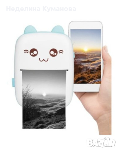 Мини принтерът е с компактни размери, което го прави лесен за пренасяне, използване и съхранение. Лесно се побира в чанта, раница или дори джоб . Дизайнът на котката ще се хареса на деца и тийнейджъри.