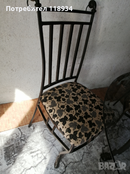 Комплект маса със 4 стола от желязо и стъклен плот.
