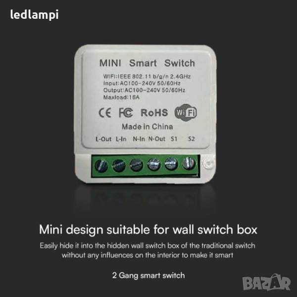 Wi-Fi активиран Mini Smart 2 Gang Switch