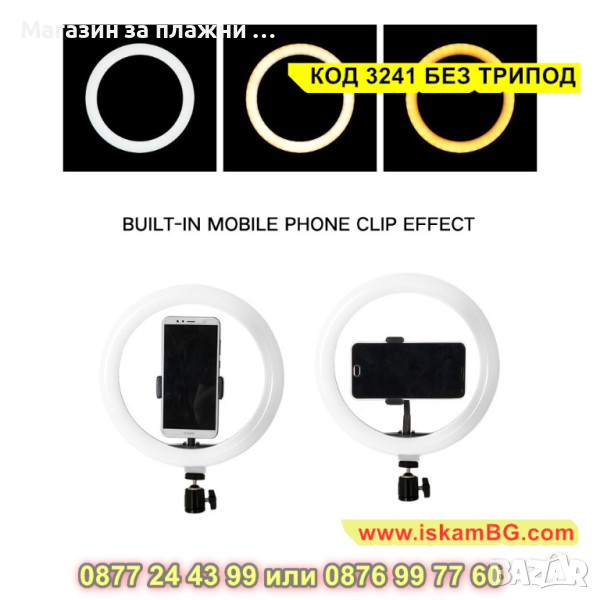 LED Селфи Ринг 10 Инча , Лампа за селфи без стойка - КОД 3241 БЕЗ ТРИПОД