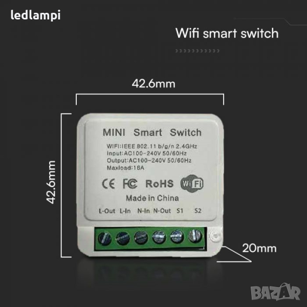 Размери: 42.6 x 42.6 x 20mm