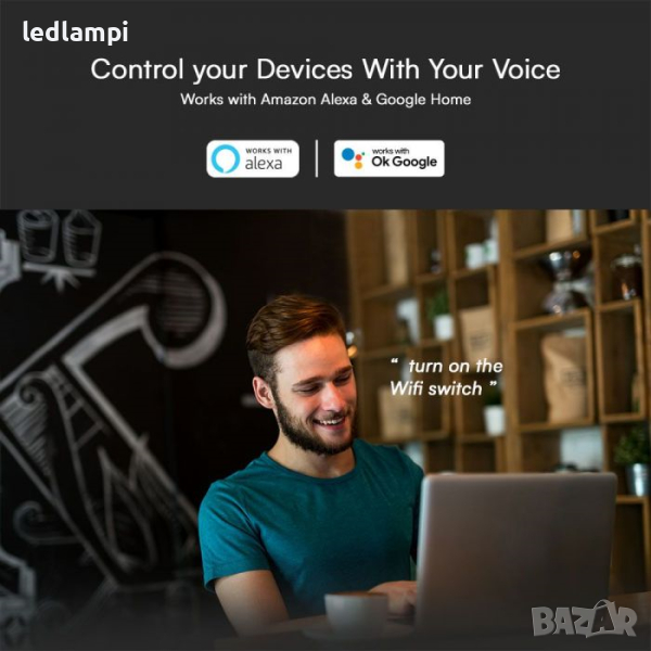 Може да се контролира чрез приложението Smart Life или Alexa и Google Home