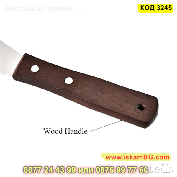 Ергономична, дървена дръжка за повече удобство ,метална част от неръждаема стомана.
