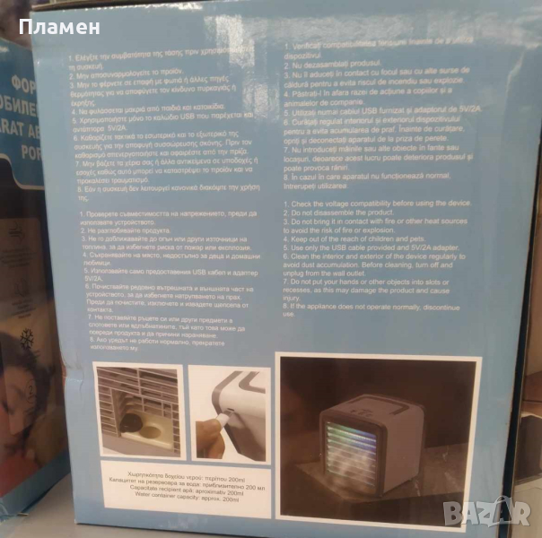Преносим портативен климатик с мъгла и USB 5V-7W - 13x13.8x14.8cm