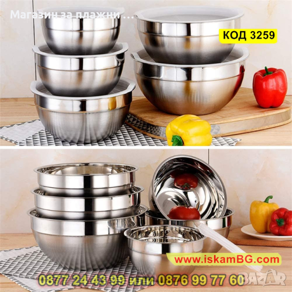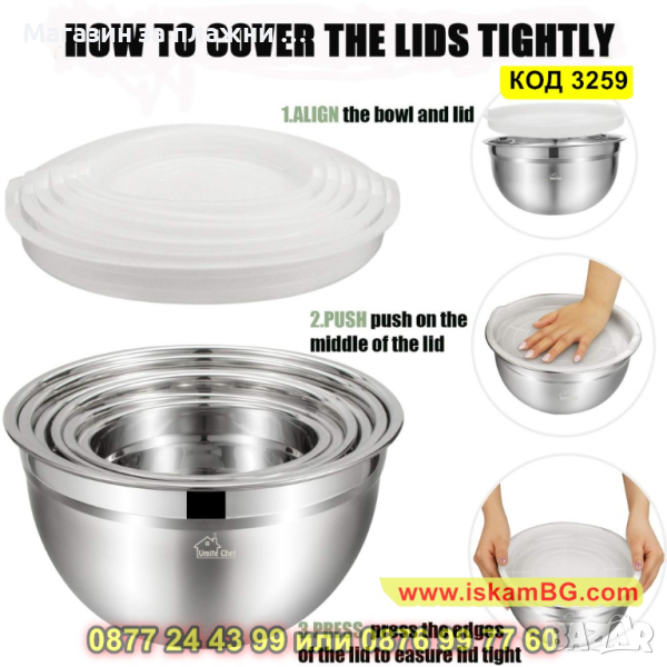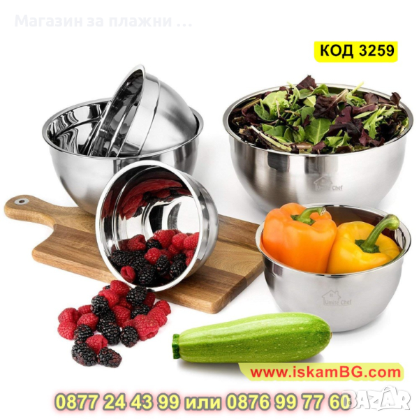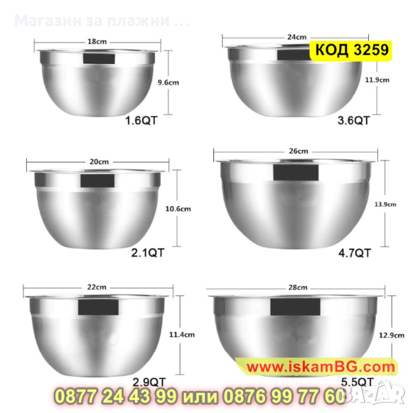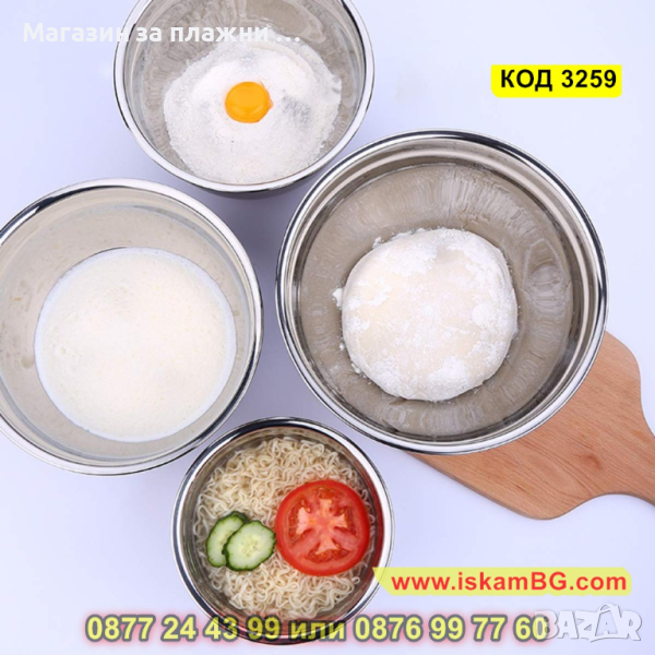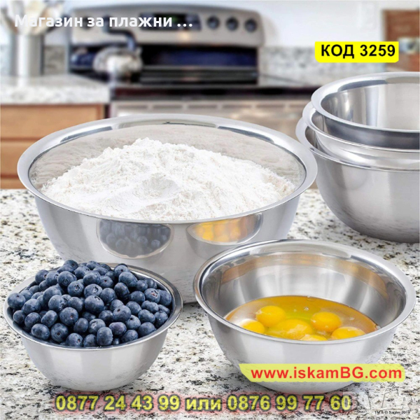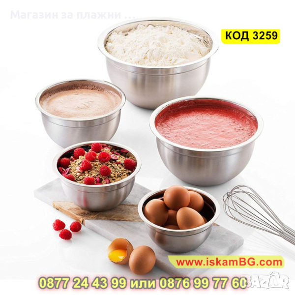Стоманени дълбоки купи за разбиване на яйца и разбъркване с миксер - КОД 3259