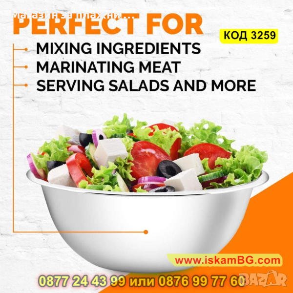 Искате ли спокойно да се развихрите в кухнята си без да се тревожите, че ще нацапате кухненския си плот? Тогава тези метални купи, които ние Ви предлагаме са точното кухненско оборудване, което Ви е необходимо! Практични и удобни при приготвянето на кексове или торти, защото яйцата за тях, можете да разбиете с миксера си именно в тези дълбоки и стабилни купи с плоска основа за баланс. Също така ще можете да мариновате месо, да разбивате с тел, да приготвяте любими кремове или дори да съхраните някоя храна в хладилника – плодове или зеленчуци. Тези стоманени купи се предлагат в различни размери от 16 до 28 см в диаметър. Предлагат се и подходящи капаци за всеки размер купа. Лесни за почистване.