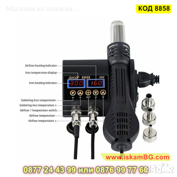 Нагревател за въздух и поялник 2 в 1 преработваща станция за запояване.