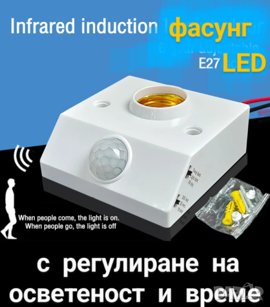 фасунга Е27 с PIR датчик , снимка 1 - Друга електроника - 44954992 фасунга Е27 с PIR датчик , снимка 2 - Друга електроника - 44954992 фасунга Е27 с PIR датчик , снимка 3 - Друга електроника - 44954992 фасунга Е27 с PIR датчик , снимка 4 - Друга електроника - 44954992 1/4