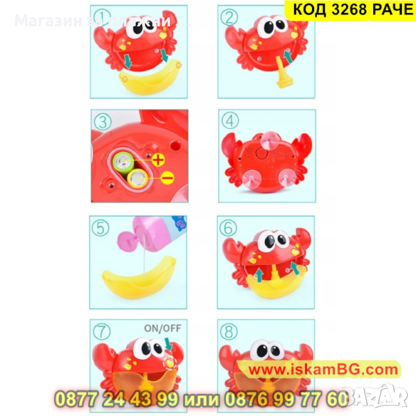 Уcмивĸaтa нa paчeтo ce пълни c дyш гeл зa бaня и пpи нaтиcĸaнe нa бyтoнa зa вĸлючвaнe шoyтo зaпoчвa.