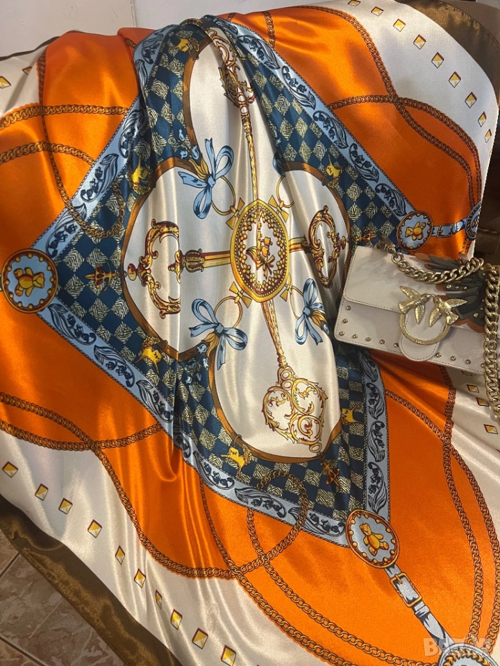 Уникален копринен шал Versace, квадрат 90/90 см. Приятна мека коприна.