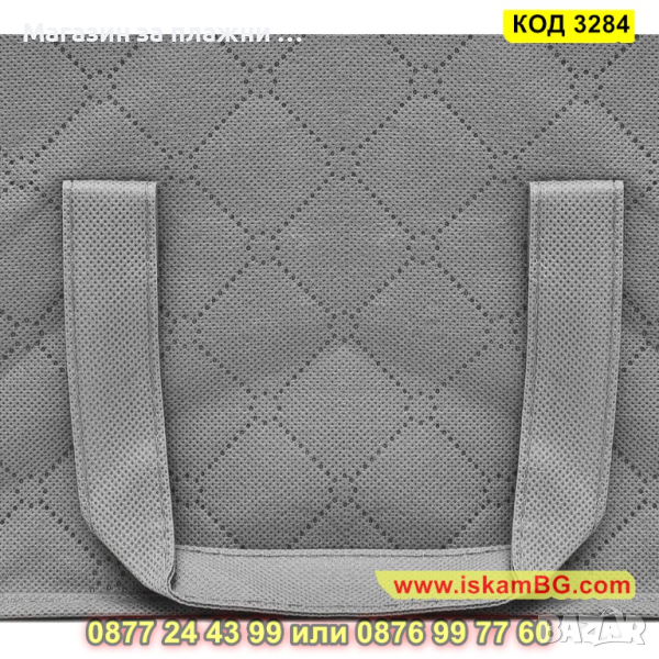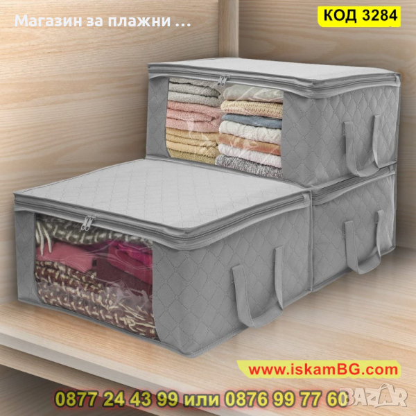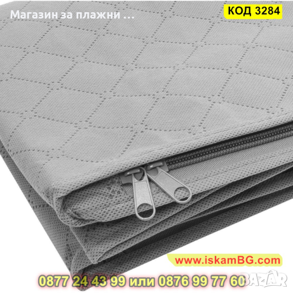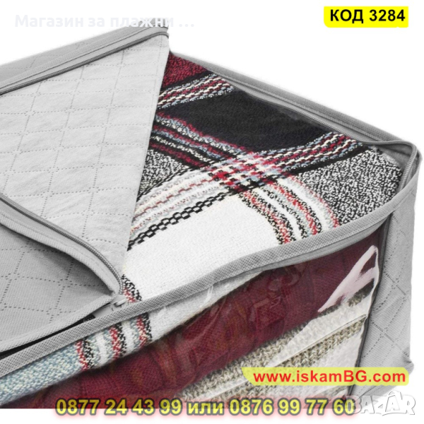Сгъваемият калъф за съхранение и подреждане на дрехи и завивки притежава две удобни дръжки, които са разположени отстрани. Можете да го поставите на различни места – гардероб, под легло, като ще Ви спести място. Дизайнът на калъфа за съхранение е прозрачен от части, което позволява да видите съдържанието му и бързо да намерите нужната Ви вещ.