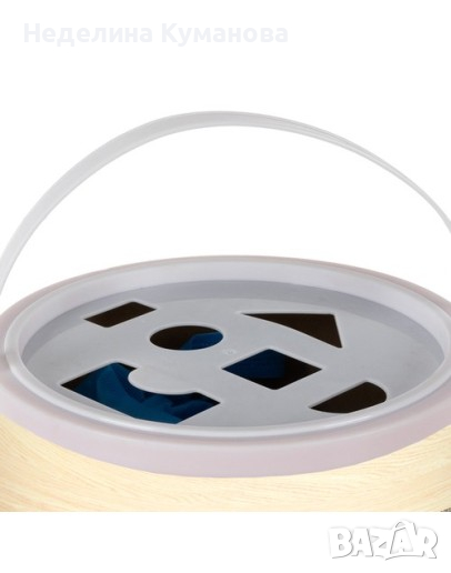 Цялата е опакована в здрава кофа с дръжка, която има сортировъчен капак и платнена торбичка за блокчетата.