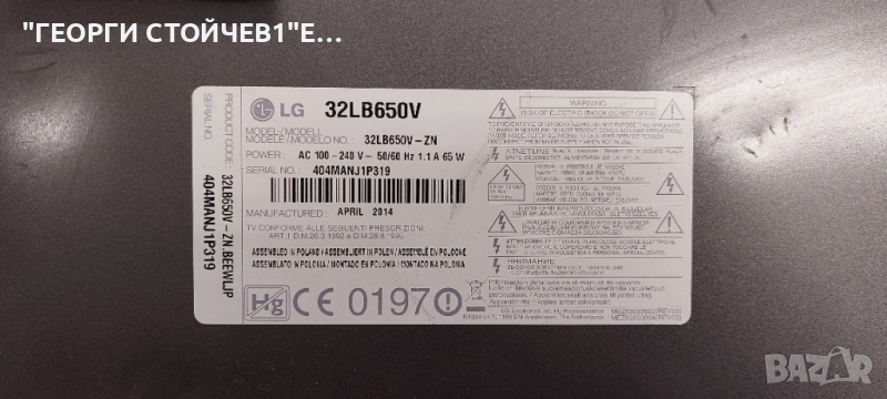 32LB650V  EAX65384003(1.2)  EBT62800435 EAX65391401(2.6)    LGP32-14PL1   LC320DUH(FG)(P2), снимка 1 - Части и Платки - 44957223 32LB650V  EAX65384003(1.2)  EBT62800435 EAX65391401(2.6)    LGP32-14PL1   LC320DUH(FG)(P2), снимка 2 - Части и Платки - 44957223 32LB650V  EAX65384003(1.2)  EBT62800435 EAX65391401(2.6)    LGP32-14PL1   LC320DUH(FG)(P2), снимка 3 - Части и Платки - 44957223 32LB650V  EAX65384003(1.2)  EBT62800435 EAX65391401(2.6)    LGP32-14PL1   LC320DUH(FG)(P2), снимка 4 - Части и Платки - 44957223 32LB650V  EAX65384003(1.2)  EBT62800435 EAX65391401(2.6)    LGP32-14PL1   LC320DUH(FG)(P2), снимка 5 - Части и Платки - 44957223 32LB650V  EAX65384003(1.2)  EBT62800435 EAX65391401(2.6)    LGP32-14PL1   LC320DUH(FG)(P2), снимка 6 - Части и Платки - 44957223 32LB650V  EAX65384003(1.2)  EBT62800435 EAX65391401(2.6)    LGP32-14PL1   LC320DUH(FG)(P2), снимка 7 - Части и Платки - 44957223 32LB650V  EAX65384003(1.2)  EBT62800435 EAX65391401(2.6)    LGP32-14PL1   LC320DUH(FG)(P2), снимка 8 - Части и Платки - 44957223 32LB650V  EAX65384003(1.2)  EBT62800435 EAX65391401(2.6)    LGP32-14PL1   LC320DUH(FG)(P2), снимка 9 - Части и Платки - 44957223 32LB650V  EAX65384003(1.2)  EBT62800435 EAX65391401(2.6)    LGP32-14PL1   LC320DUH(FG)(P2), снимка 10 - Части и Платки - 44957223 1/10