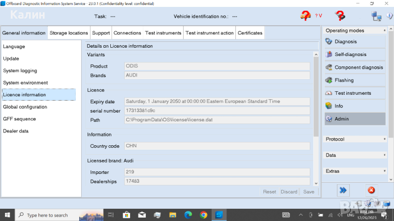 - ODIS Engineering 17 - дилърския софтуер за програмиране на VAG моделите (покрива моделите на VW, AUDI, SEAT, Skoda, Bentley, Lamborghini, Bugatti, MAN and VW Nutzfahrzeunge (Commercial vehicles) от 1995/1996 до 6.2023). Софтуера е напълно отключен и активиран до 2030 година. Всички брандове се пускат от една икона на десктопа. Всички клиенти получават FREE папка с регионални лицензи, в противен случай много нови модели изобщо не можете да ги прочетете (като моделите доставени от USA). Този проблем ще го имате при инсталация от разни псевдо-специалисти.
