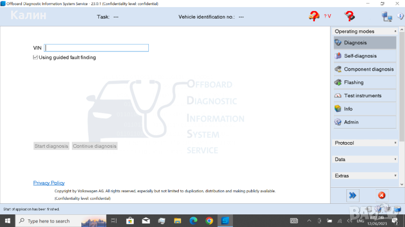 - ODIS Service 23 (покрива моделите на VW, AUDI, SEAT, Skoda, Bentley, Lamborghini, Bugatti, MAN and VW Nutzfahrzeunge (Commercial vehicles) от 1995/1996 до 6.2023). Софтуера е напълно отключен и активиран до 2030 година. Всички брандове се пускат от една икона на десктопа. Всички клиенти получават FREE папка с регионални лицензи, като US, RUS, DE, UK, CN и прочие, в противен случай много нови модели изобщо не можете да ги прочетете (като моделите доставени от USA). Този проблем ще го имате при инсталация от разни псевдо-специалисти.