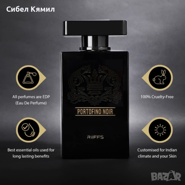 Оригинален Арабски парфюм PORTOFINO NOIR RiiFFS Eau De Perfume 100ml / Този уникален парфюм е създаден специално за хора като вас, които преоткриват магията в ежедневието и се стремят към величие във всичко, което правят. С неговия интригуващ аромат, вдъхновен от величествените моменти на живота, вие се чувствате като истинска звезда, готова да се изправи срещу всички предизвикателства. Този парфюм е повече от просто аромат - той е ключът към вашата увереност и сила. С неговата дълготрайна формула, той не само подчертава вашата неповторима личност, но и добавя изтънчен нюанс към вашата аура. Носете го с гордост всеки ден и се наслаждавайте на усещането да бъдете истинска звезда в света около вас.