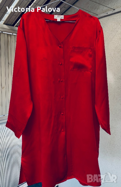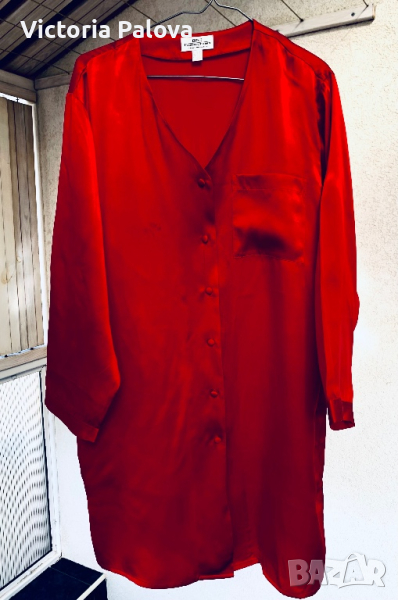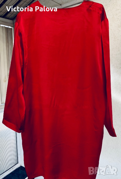 Рамо- 48см, ГО - 60см, дължина -93см, цепки отстрани - 15см, ръкав - 54см. Прекрасно качество гладка лъскава коприна.