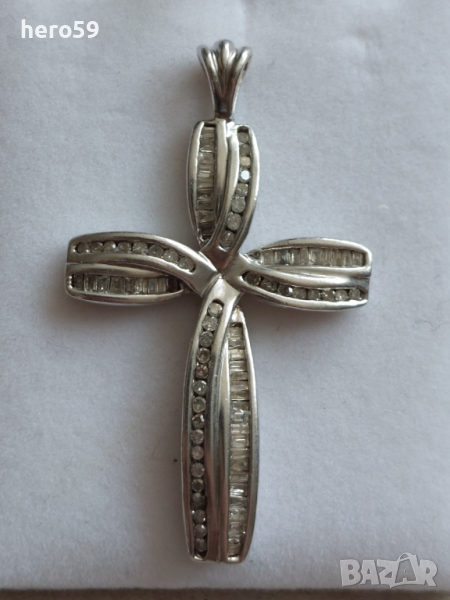 Предлагам за продажба сребърен родиран кръст с инкрустирани 48 брилянта и още 48 балета,което тотал прави един карат.Самите брилянти струват толкова пари по дилърски ценоразпис.