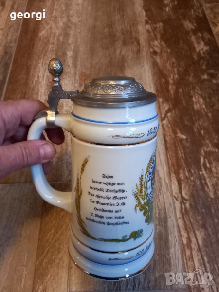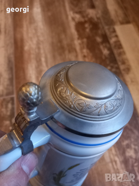 немска порцеланова халба за бира с цинков капак 4/1 → Обява 44958725