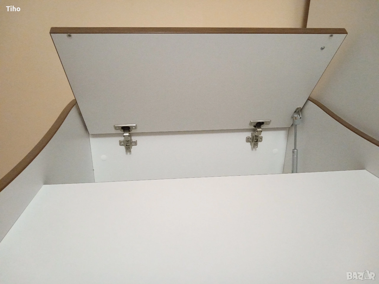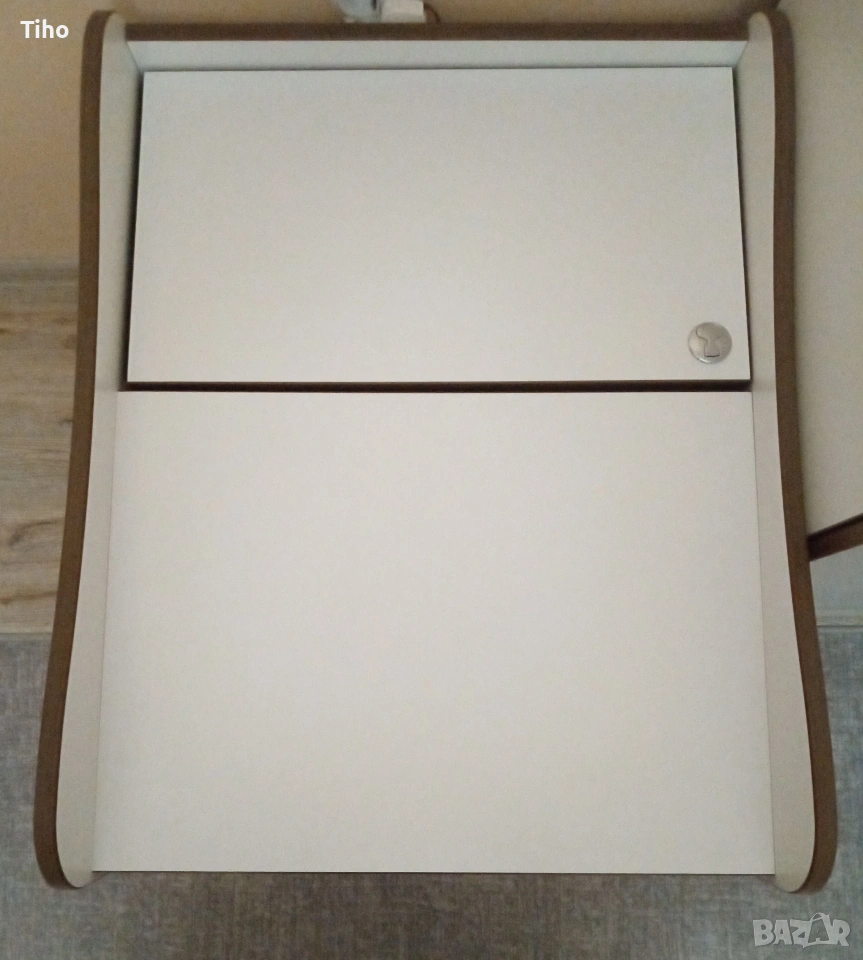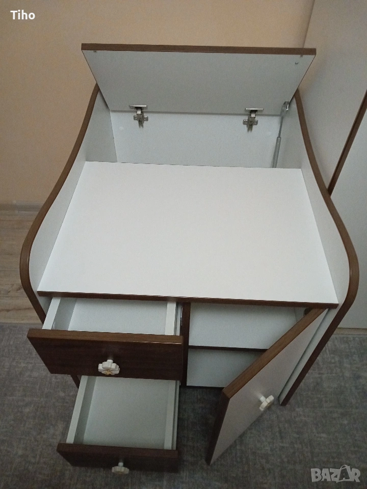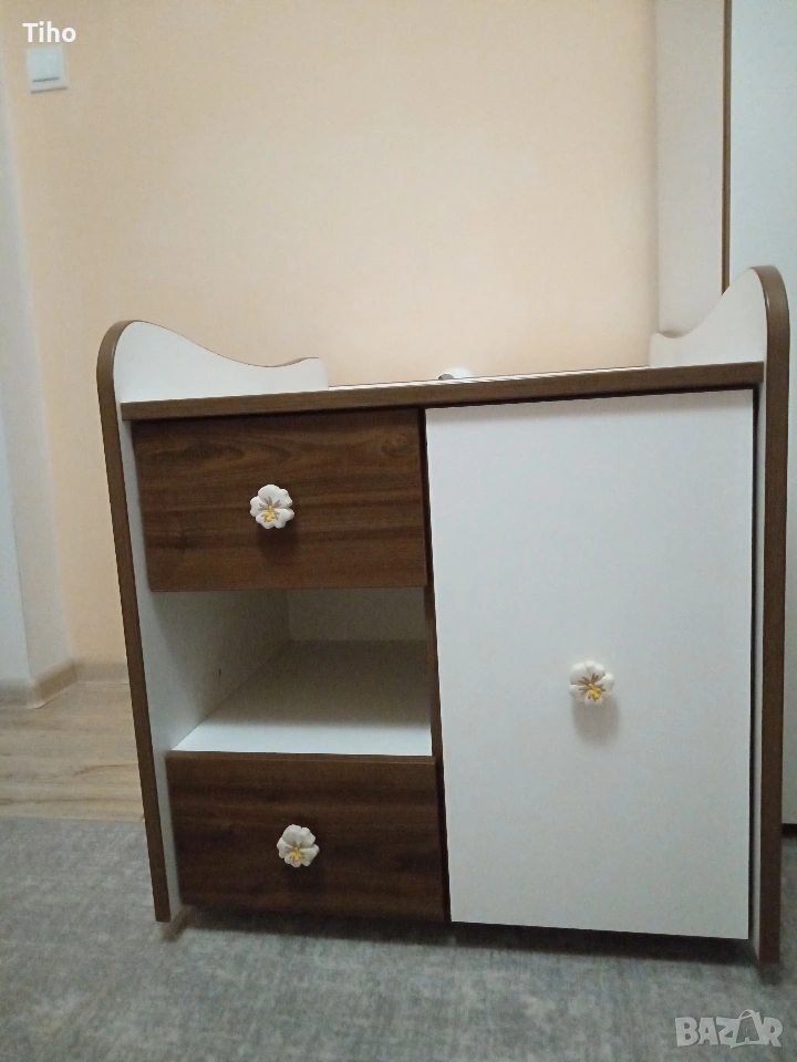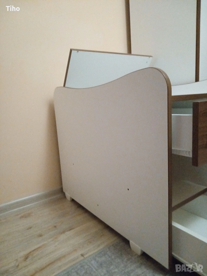 Изработен е от 18мм плоскости, в цвят орех+бял мат с приятни извивки, подходящ за детска стая. А с белия цвят е идеален за допълнително декориране.