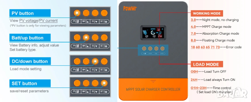 Контролер за слънчево зареждане PowMr 60AMP