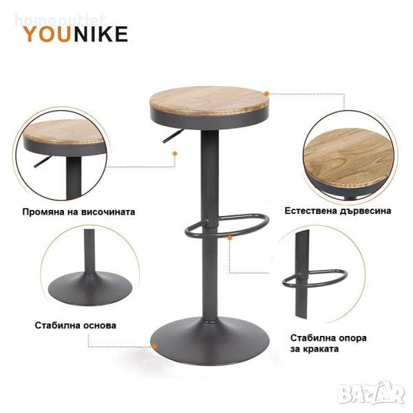 Оригиналният бар стол от масивно дърво изглежда много модерен, а привличащият окото ретро модел може да пасне на всеки интериор.