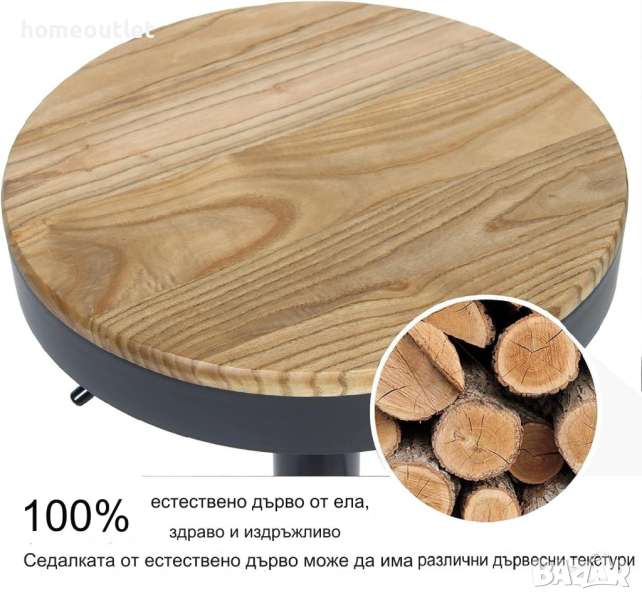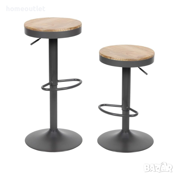 Комплект от 2 бар стола, със седалка от масивно дърво, регулируеми на височина.