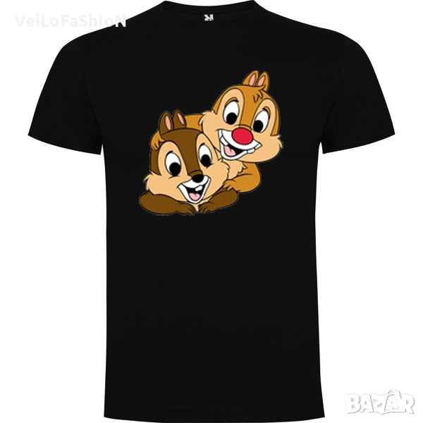 Новa детска тениска в зелен или черен цвят с с катериците Чип и Дейл, произведена от 100% памук с плътност на тениската 190гр./м². Тениската е с тънко деколте съдържащо ликра за по-добра здравина при обличане. Подходяща както за ежедневна употреба, така и за спорт или тренировка в свободното време.
